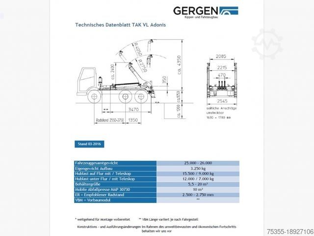 * Gross vehicle weight: 25,000 - 26,000 kg