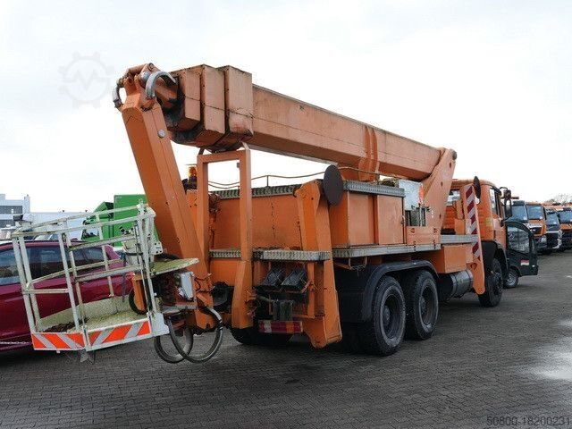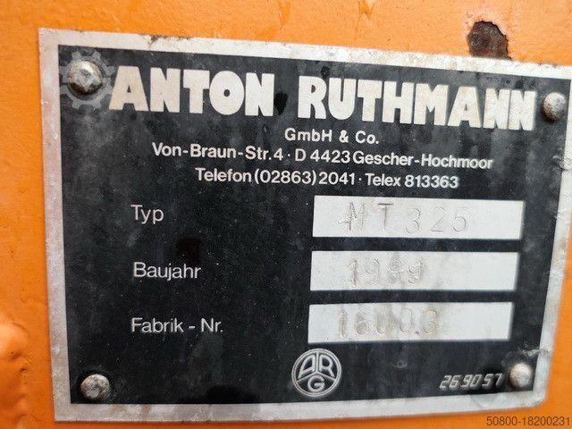 Рабочая платформа RUTHMANN, тип: MT 325, высота подъема ок. 16,20 м, вылет ок. 27,40 м, телескопическое выдвижение подъемной стрелы ок. 16,20 м, угол поворота 450 градусов, рабочая платформа / 1,70 х 1,00 м, грузоподъемность ок. 500 кг, защита от перегрузки, 4-кратная гидравлическая поддержка выдвижной и поддерживаемый, блокировка заднего дифференциала, центральная система смазки, коробка отбора мощности, стандартное сиденье водителя с подвеской, наружное зеркало с электроприводом. регулируемая сторона со стороны пассажира, всплывающее окно, зеркало на рампе, боковые отражатели, 2 поворотных маяка, усиленные параболические рессоры спереди и сзади, бак ок. 300 литров, автомобиль может быть накрыт и/или промаркирован рекламой.