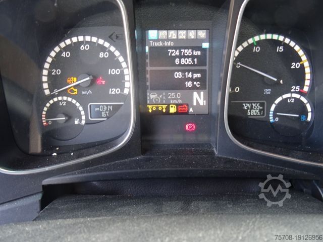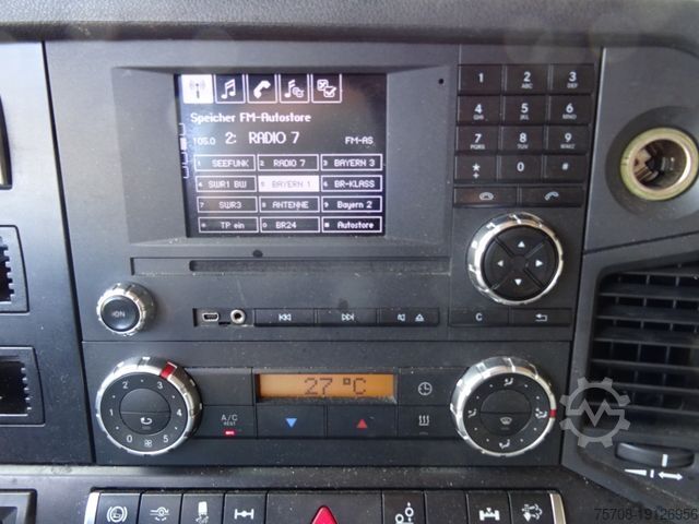 Front axle load 8.0 t, driver's side airbag, audio system: CD radio (Bluetooth), exhaust down to the right, right-hand exterior mirror with maneuvering position, standard and DuoMatic brake connection, high-pressure air unit, driver assistance system: Attention Assist (drowsiness detection sensor), driver assistance system: Brake Assist (Active Brake Assist 3), driver assistance system: Lane Keeping Assist, driver assistance system: Roll Control Assist, cab: width 2.50 m, tinted windshield with band filter, vehicle without trailer hitch, urea tank (AdBlue): 75 liters, 12.7 cm information display with additional gauge, 390-liter aluminum fuel tank, unregulated power steering pump, integrated air intake, 2-cylinder air compressor, steered, liftable trailing axle, retarder, drawers under the parapet, cab seats: passenger seat armrest, cab seats: standard suspension seat, cab seats: folding passenger seat backrest, cab seats: comfort suspension seat, side window sunblinds, driver and passenger doors, 9.00x22.5 steel rims, storage compartment on the left under the cab, additional 24V socket in the passenger footwell, Fleetboard preparation, transmission oil cooler.