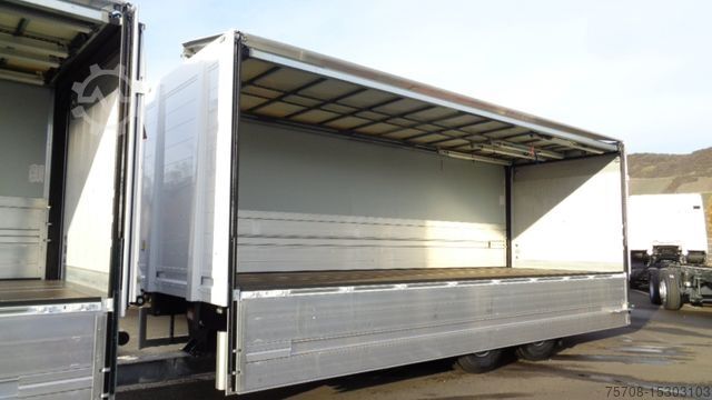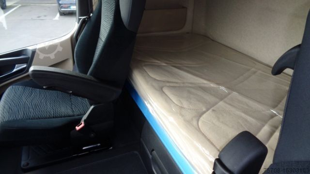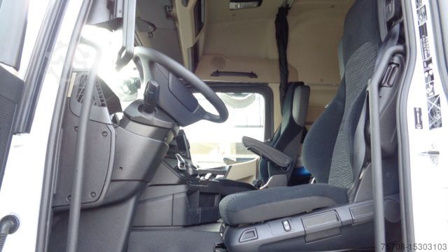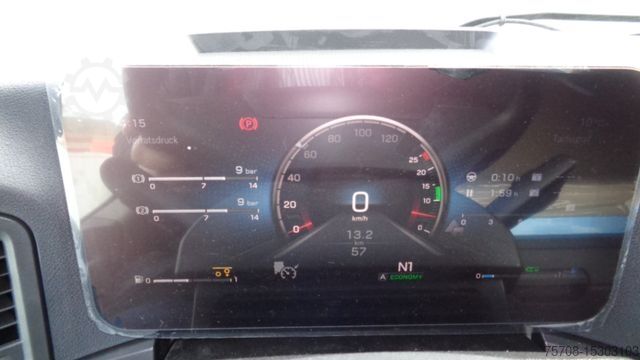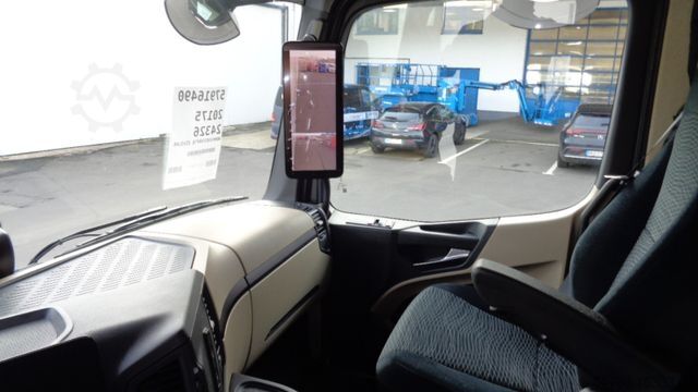 Front axle load 8.0 t, driver's side airbag, trailer stabilization program TSA, standard and DuoMatic brake connection, interactive multimedia cockpit, compressed air horn, driver assistance system: high beam assistant and cornering light, vehicle without rear underrun protection, 150 A generator, regulated, 12-speed gearbox - type: G 211-12, automatic air conditioning, 3-part fender, 3-part fender with splash guard, fuel tank: 500 ltr. aluminum, left, 2-cyl. air compressor, reinforced engine brake, 7.5 t trailing axle steered, load-relieving, liftable, wheelbase variant 4900 mm, frame overhang 2250 mm, rain sensor, acoustic reversing alarm (external warning signal), tail lift switch, additional key with remote control (2), drawers under parapet, seat cover / upholstery: Velours passenger seat, seat cover/upholstery: Velours driver's seat, seats in the driver's cab: armrests on both sides of the passenger seat, seats in the driver's cab: comfort driver's seat, sun visor outside, sun blind on the side window, driver's door, storage flap outside on the left, additional 24V socket in the passenger footwell, preparation for 4 surrounding cameras (display in the on-board monitor), preparation for cool box/refrigerator, curtain for sleeping cabin, seat belt warning device