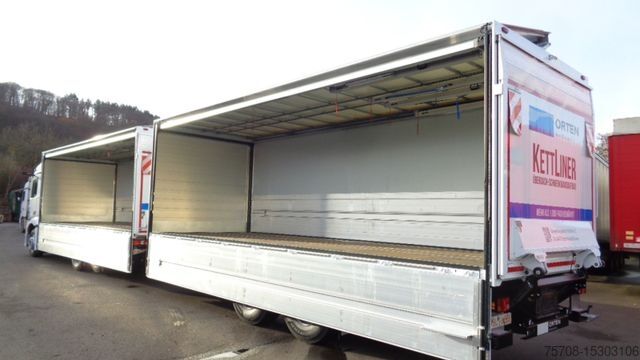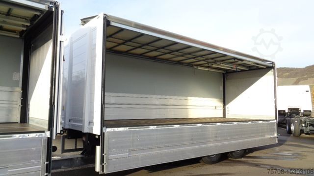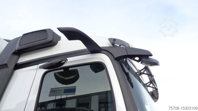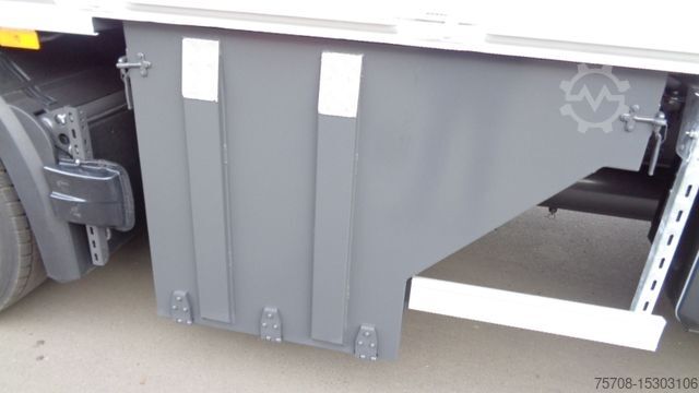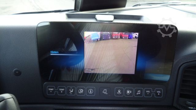 Front axle load 8.0 t, driver's side airbag, trailer stabilization program TSA, standard and DuoMatic brake connection, interactive multimedia cockpit, compressed air horn, driver assistance system: high beam assistant and cornering light, vehicle without rear underrun protection, 150 A generator, regulated, 12-speed gearbox - type: G 211-12, automatic air conditioning, 3-part fender, 3-part fender with splash guard, fuel tank: 500 ltr. aluminum, left, 2-cyl. air compressor, reinforced engine brake, 7.5 t trailing axle steered, load-relieving, liftable, wheelbase variant 4900 mm, frame overhang 2250 mm, rain sensor, acoustic reversing alarm (external warning signal), tail lift switch, additional key with remote control (2), drawers under parapet, seat cover / upholstery: Velours passenger seat, seat cover/upholstery: Velours driver's seat, seats in the driver's cab: armrests on both sides of the passenger seat, seats in the driver's cab: comfort driver's seat, sun visor outside, sun blind on the side window, driver's door, storage flap outside on the left, additional 24V socket in the passenger footwell, preparation for 4 surrounding cameras (display in the on-board monitor), preparation for cool box/refrigerator, curtain for sleeping cabin, seat belt warning device