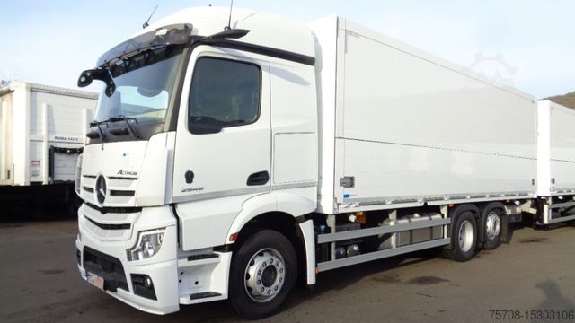 Emissions standard EURO 6, storage above the windscreen with cover, axle configuration: 6x2, Actros 5, Actros driver's cab L, heated approach/front mirror, trailer brake 2 - line, connections on the left, trailer socket 24V/15-pin, exhaust to the right outside, equipment package: Powertrain 2, outside mirror camera MirrorCam, 220 Ah battery, batteries arranged next to each other, rear axle differential lock, torque increase 12th gear, compressed air connection in the driver's cab, steel compressed air tank, compressed air unit with Condensate monitoring, medium compressed air unit, automatic switch-on for driving lights (light sensor), driver assistance system: Attention Assist (fatigue detection sensor), driver assistance system: Autonomous emergency braking assistant (Active Brake-Assist 5), driver assistance system: Lane departure warning system, driver's cab: rigid cab entrance, driver's cab: chrome interior package, driver's cab: hydraulic tilting device