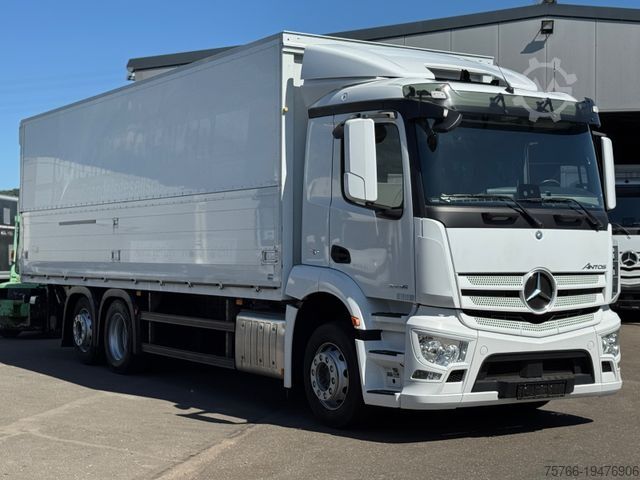 EURO 6 emissions standard, 6x2 axle configuration, 2-wire trailer brake, left-hand connections, 24V/15-pin trailer socket, Antos, electric exterior mirrors. adjustable and heated, differential lock rear axle, steel compressed air tank, driver assistance system: lane departure warning, driver's cab: width 2.30 m, driver's cab: hydraulic tilting device, driver's cab: M ClassicSpace, driver's cab floor with engine tunnel 320 mm, suspension: air / air (full air), electric windows, tinted windscreen, urea tank (AdBlue): 60 Ltr., manual lifting roof (steel), rear axle crown gear 440, body/structure: chassis, comfort locking system, fuel tank: 290 Ltr. aluminum, unregulated power steering pump, air intake from the front, 2-stage air compressor, engine 7.7 Ltr. - 260 kW R6 diesel (OM 936), engine compartment encapsulation, trailing axle with single tires, wheelbase 4900 mm, ramp mirror, spare wheel, residual heat utilization, disc brakes front and Rear axle, seat cover/upholstery: fabric, cab seats: passenger seat, front splash guard, front axle stabilizer, additional stabilizer, rear axle/trailing axle, 24V cab socket, tachograph/EC control unit, aerodynamically shaped underbody paneling, front underrun protection, toll collection preparation, offset front axle,