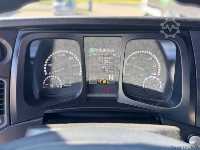 Front axle load 8.0 t, 12V/13-pin trailer socket, audio system: CD radio (Bluetooth), 220 Ah battery, standard and DuoMatic brake connection, compressed air connection in the cab, high compressed air unit, air horn, electrical preparation in the cab 24V/100 A, driver assistance system: brake assist (Active Brake Assist), cab: steel suspension, comfort, 150 A generator, 12-speed transmission - type: G 211-12, 12.7 cm information display with video function, 3-piece fenders, 500 L aluminum fuel tank, roof air deflector (lockable), reinforced engine brake, steered trailing axle, audible reversing alarm (external warning signal), tail lift switch, reinforced end cross member, automatic circuit breaker, seats in the cab: driver's seat: comfort suspension seat, seats in the cab: Folding driver's seat backrest, exterior sun visor, side window sun blind, driver's door, 24V/12V 10A voltage converter, 12V socket in the passenger footwell, additional 24V socket in the passenger footwell, CB radio preparation, rearview camera preparation, auxiliary heating (water).
