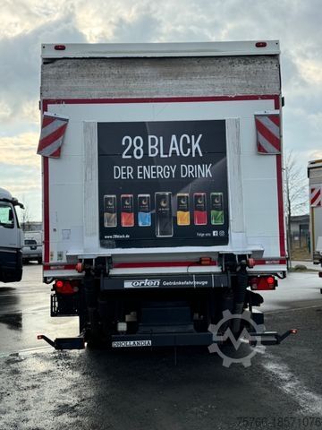 Audio system: CD radio (Bluetooth), 220 Ah battery, standard and DuoMatic brake connection, compressed air connection in the driver's cab, aluminum compressed air tank, additional compressed air tank, compressed air horn, suspension: front springs 7.5 t, 1 blade, generator 150 A, 12.7 cm info display with video function, fuel tank: 390 ltr. aluminum, reinforced engine brake, steered trailing axle, liftable, retarder, tail lift switch, reinforced end cross member, automatic circuit breaker, seats in the driver's cab: comfort driver's seat, sun visor outside, 12V socket in the passenger footwell, additional 24V socket in the passenger footwell, preparation for reversing camera