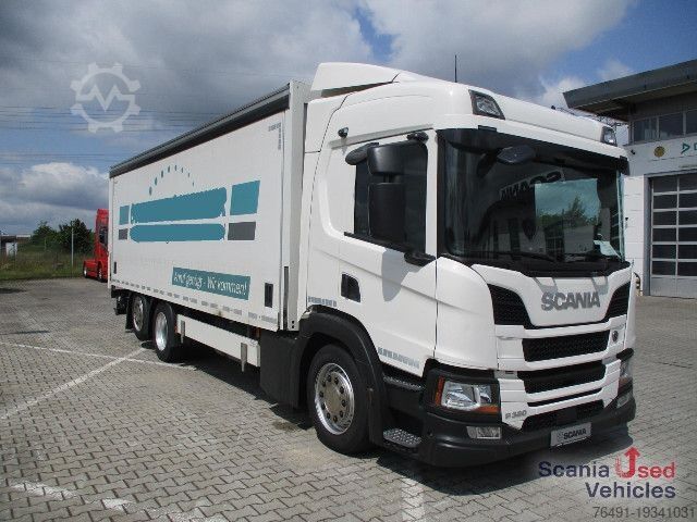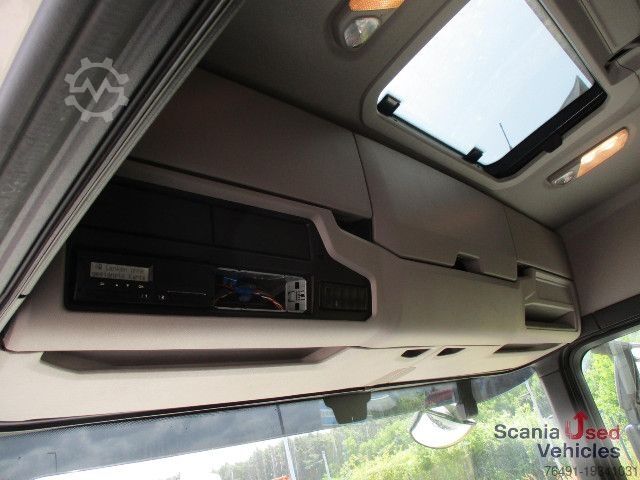 Color White, empty weight: 10,685 kg, permissible total weight: 26,000 kg, loading space (L W H): 7,350 mm x 2,470 mm x 2,090 mm, 1st axle: 355/50 R22.5, 2nd axle: 295/60 R22.5, 3rd axle: 355/50 R22.5, air suspension, upright tail lift Alu: BÄR BC 2000 S4-C4, steered lift axle, digital tachograph, electronic braking system EBS, electronic stability program ESP, traction control ASR, automatic climate control, adaptive cruise control ACC, medium seats, air-suspended driver's seat, seat heating, level control, H7 headlights, automatic driving lights, headlight range adjustment, radio, Bluetooth phone preparation, Scania Lane Departure Warning System, reversing camera, adjustable steering column, electric windows, roof hatch, outside temperature display, roof spoiler, fog lights, electrically adjustable and heated exterior mirrors, curb mirror electrically adjustable, wide-angle mirror, immobilizer, central locking, wind deflector, sun visor, hill start assist, LED daytime running lights, 1x15-pin connection plug, speed limiter, SCR sliding panel platform body K+G tec internal dimensions 7,350 x 2,470 x 2,090 mm, non-binding offer, errors and prior sale excepted. Image may not match the offer. Offer no.: UVB250049.