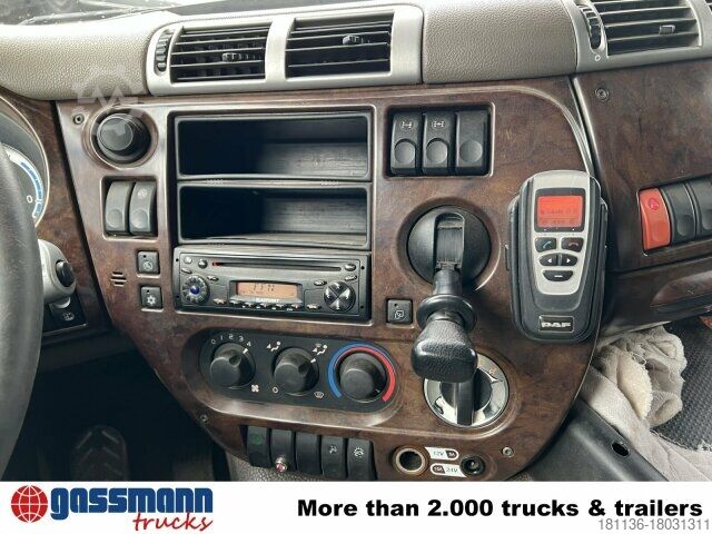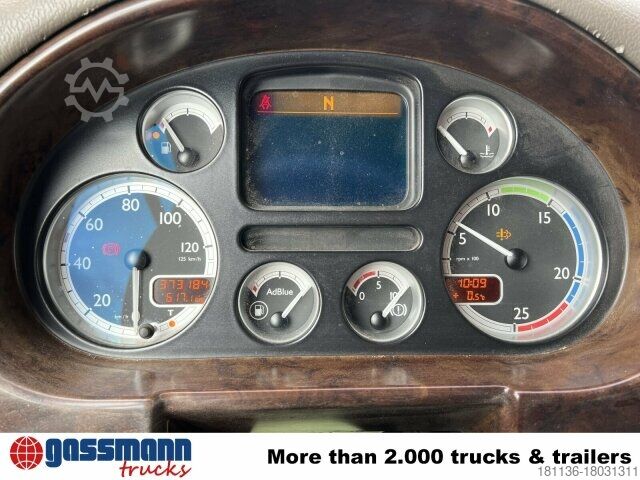 Vehicle location: Bovenden, Lg. House, 1x comfort seat, 1x couch, seat heating, electric mirror, heated mirror, electric window left, electric window right, air conditioning, sun visor, cruise control, burl wood decor, auxiliary heating, air horn, ABS (anti-lock braking system), constant throttle, power take-off, exhaust raised, automatic transmission, differential lock, fog lights, driving lights, work lights, rotating beacon, storage box, leaf-air suspension, towbar air-light-hydr., U-protection folding, EBS, green environmental sticker