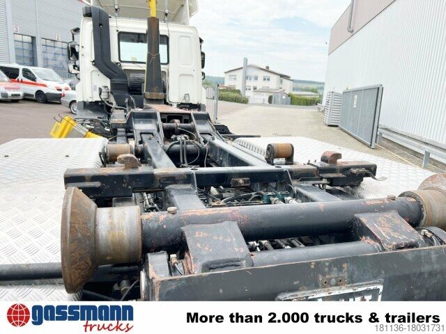 Vehicle location: Bovenden, license plate house, 1x air seat, electric mirrors, heated mirrors, electric window left, electric window right, air conditioning, radio, cruise control, ABS (anti-lock braking system), automatic, roof spoiler, AS-Tronic automatic, differential lock, fog lights, high beams, leaf-spring/air, last axle liftable and steerable, trailer hitch air+light, low noise G1, side aluminum underrun protection, storage box, roof hatch, green environmental sticker