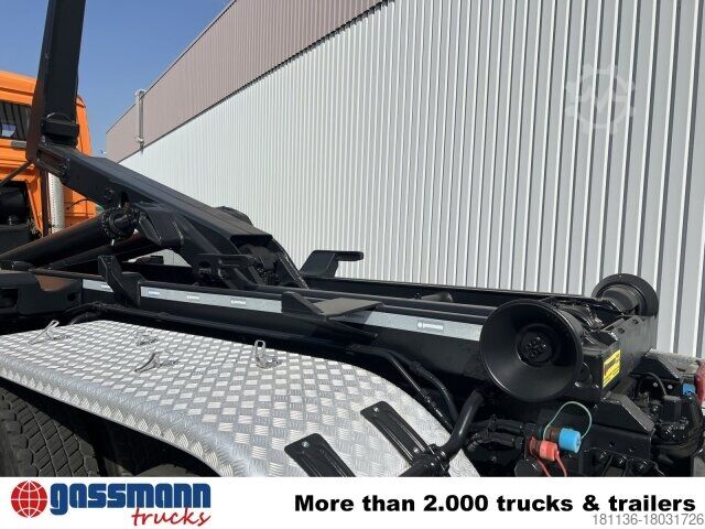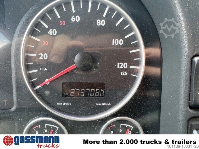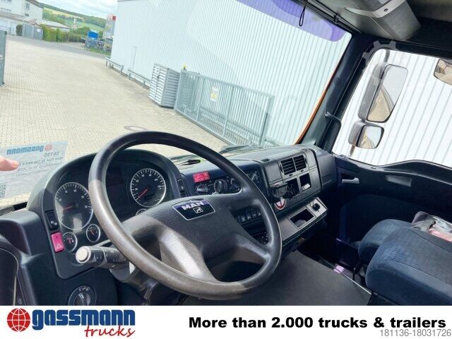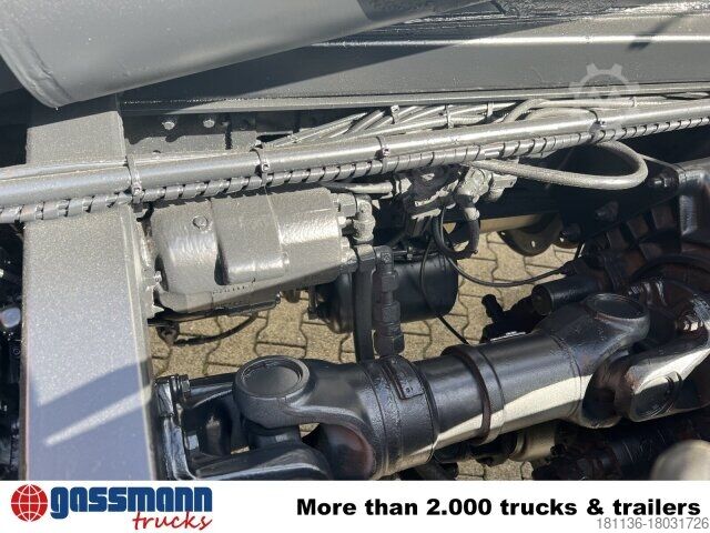 Vehicle location: Bovenden, Mtlg. House, 1x comfort seat, double bench seat, seat heating, rear window, electric mirror, heated mirror, electric window left, electric window right, air conditioning, sun visor, cruise control, ABS (anti-lock braking system), traction control (ASR), constant throttle, power take-off, raised exhaust, automatic transmission, differential lock, fog lights, work lights, rotating beacon, storage box, leaf-,air, last axle liftable and steerable, trailer hitch air-light-hydr., Low-noise G1, U-protection hydr. adjustable, side aluminum driving protection, roof hatch, green environmental sticker