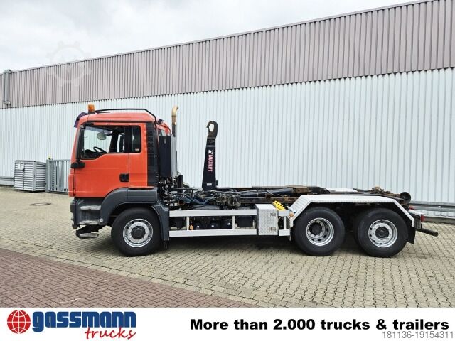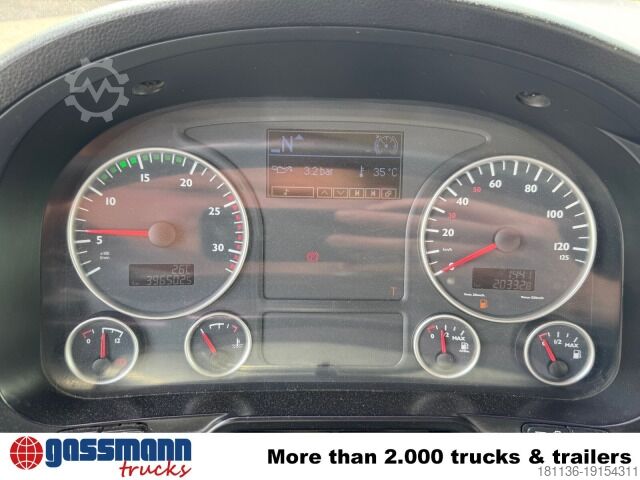Vehicle location: Bovenden, construction house, 1x comfort seat, seat heating, rear window, electric mirrors, heated mirrors, electric window left, electric window right, air conditioning, sun visor, 16 switches, ABS (anti-lock braking system), traction control (ASR), PTO, raised exhaust, differential lock, fog lights, work lights, rotating beacon, storage box, leaf and air suspension, last axle liftable and steerable, trailer coupling air-light-hydraulics, underrun protection, hydraulic cross lock, roof hatch, green environmental badge