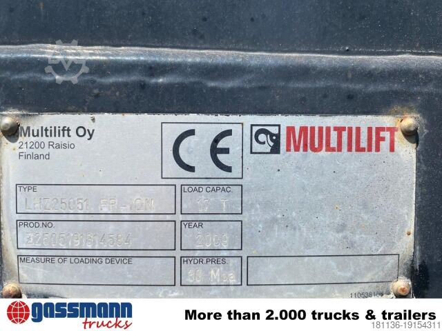 Wheelbase: 3900 mm Body: Multilift roll-off system, LHZ 25051 up to 6,000 m Notter (CH) swap body container with HydroDrive, hydraulic pump direct drive, for an extra cost € 14,900.00 with 7 cbm Liebherr mixer HTM 704 F (as-new), new and used containers available at extra cost