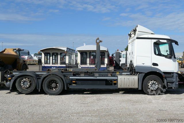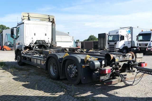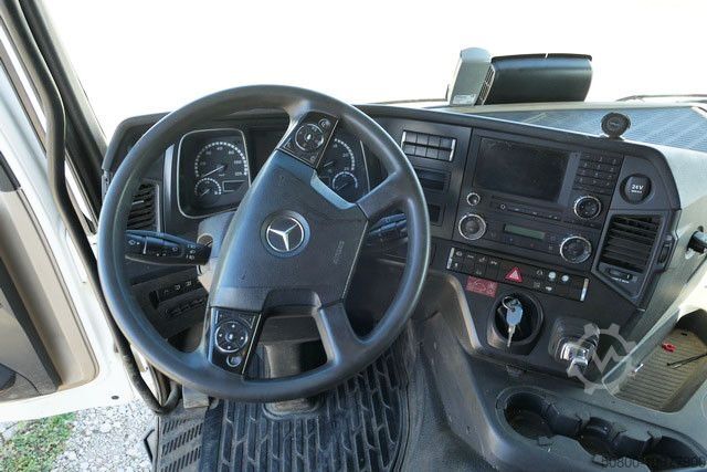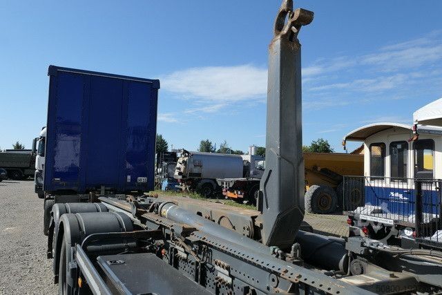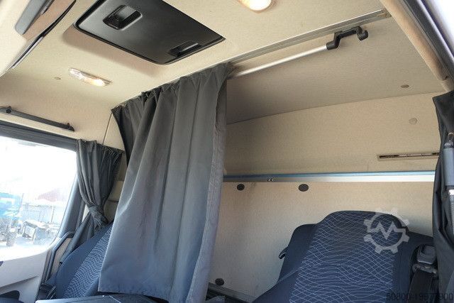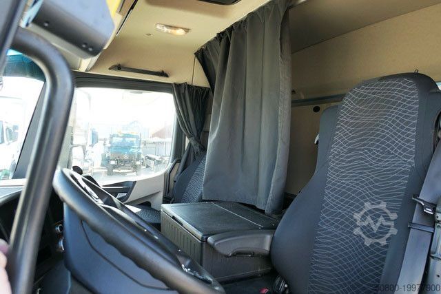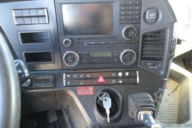 MEILLER крюковый подъемник тип: RK 21.70, макс. грузоподъемность 20 000 кг, гидравлически складываемый противооткатный упор, сцепное устройство Rockinger, тормозные соединения Duo-Matic, вторичный водяной ретардер, электронная тормозная система с ABS и ASR, система аварийного торможения Active Brake Assist (ABA), ассистент стабилизации, ассистент движения по полосе, ассистент контроля усталости водителя, адаптивный круиз-контроль, ассистент поворота, круиз-контроль, помощь при трогании с места, тормоз двигателя высокой эффективности, водительская подушка безопасности, кабина ClassicSpace, комфортабельное водительское кресло с пневмоподвеской, кондиционер, дополнительное отопление с горячей водой, комбинированная приборная панель 12,7 см с видеофункцией, радионавигационная система Bluetooth, камера заднего вида, одна спальная полка, холодильник, люк на крыше, центральный замок с дистанционным управлением, противотуманные фары, светодиодные дневные ходовые огни, свет для поворотов, централизованная система смазки, ящик для инструментов, пневматическая подвеска с функцией подъема и опускания по осям VA и HA, подъемная ось с управляемым подруливанием, на автомобиле может быть размещена реклама и/или надписи.