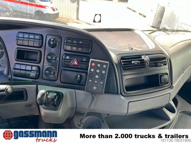 Wheelbase: 4800 mm Body: 21t Hiab Multilift XR21Z61 roll-off system with push and articulated arm for containers up to 7m 8t front axle, rear axle H6 13t disc wheel 440, hydraulically articulated trailing axle, performance-optimized Voith retarder, disc brakes on front and rear axle, Brake control with ASR, pipe rupture protection brake system, steel bumper, front underride guard, additional rear/trailing axle stabilizer, starting aid, PSM, V-distributor cockpit, Mercedes PowerShift, pollen filter, on-board diagnostics 1, tank capacity: 400l, transmission oil cooling, power take-off countershaft MB 131-2c.