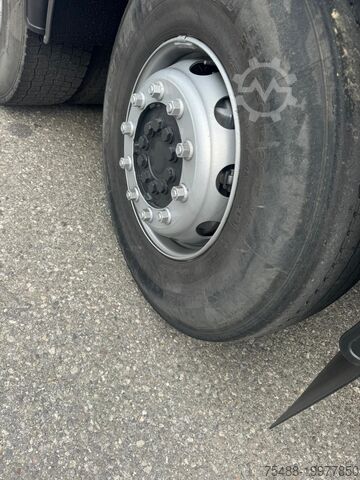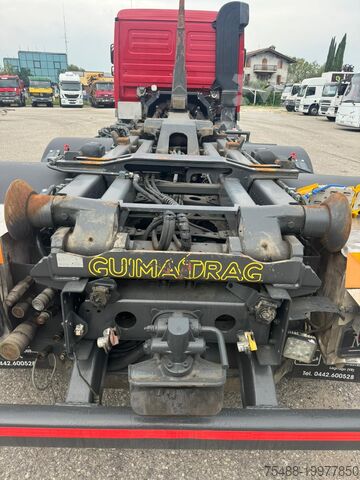 Mercedes Benz Actros MP III 2548 Hooklift Truck, 3 Axles 6x2, Year of first registration: 2011, GUIMATRAG hooklift system with 26-ton capacity, Short cab, Total length: 8,350 mm, Wheelbase: 4,300 mm, Automatic transmission, Air conditioning, ABS, Engine brake, Euro 5, 3rd axle liftable and steering, Rear air suspension, Sun visor, Electric mirrors and windows, Radio, 410,000 km, in good working condition.