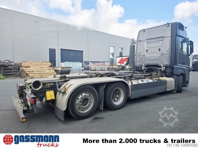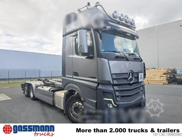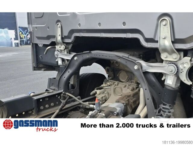 Body: 21t Meiller Tectrum RS 21.70 hooklift system for containers up to 7 m with remote control. Front axle air-suspended, 8 t front axle, rear axle hypoid 440 crown wheel 13 t, 7.5 t tag axle steered, relievable & liftable, electronic braking system with ABS and ASR, disc brakes on front and rear axles, electric parking brake, secondary water retarder, condensate monitoring for compressed air system, trailer stability assist (TSA), additional stabilizer rear/tag axle, aluminium front underrun protection, SoloStar Concept, seat belt control, top comfort bed, driver’s seat in leather, LED ambient lighting, electric auxiliary air-conditioning, residual heat utilisation, hot water additional heater, extra sound and heat insulation, electric glass roof, PSM 2nd generation, Actros L, GigaSpace, comfort locking system, light and rain sensor, driving program economy/power, Mercedes PowerShift 3, sound system, navigation system, axle load monitoring system, multimedia cockpit, Remote Online, pre-installation for toll recording, fuel tank capacity: 630 l, LED daytime running lights, automatic main/dipped beam and cornering light, LED main headlights, headlamp cleaning system, high performance engine brake, transmission oil cooling, Safety Pack, Sight Package, Climate Package, Chrome Package, ESP, roll stability control, lane keeping assist, adaptive cruise control, attention assist, traffic sign assistant, Active Brake Assist 5, driver’s airbag, laptop holder, refrigerator, rear engine PTO with ISO 7653D hydraulic pump.
