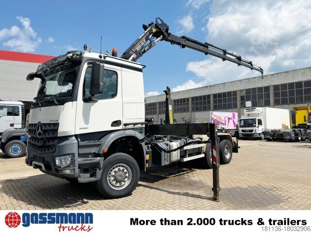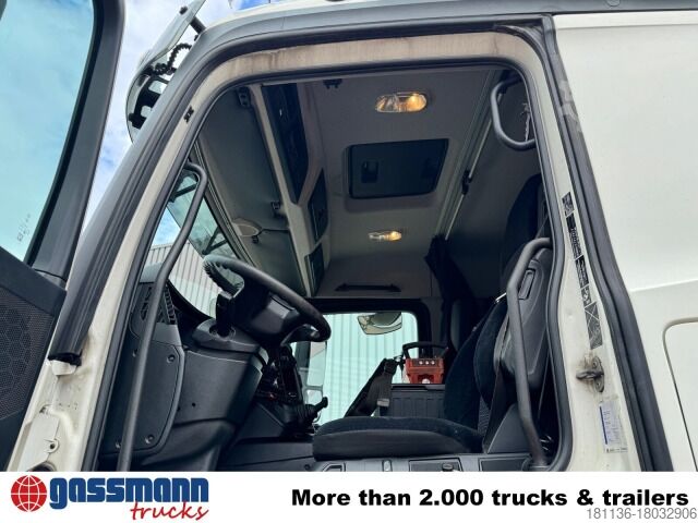 Vehicle location: Bovenden, ClassicSpace, Mercedes PowerShift 3, Lg. House, 1x comfort seat, 1x couch, seat heating, electric mirror, heated mirror, electric window left, electric window right, air conditioning, sun visor, cruise control, navigation system, air horn, ABS (anti-lock braking system), traction control system (ASR), retarder, power take-off, differential lock, fog lights, work lights, rotating beacon, storage box, leaf suspension, trailer hitch air-light-hydr, U-protection, lateral alu-running protection, hydr. transverse locking, roof hatch, crane behind house, emergency stop, foldable, 2-point hydraulic support, radio remote control, 5xhydr. extensions, green environmental sticker