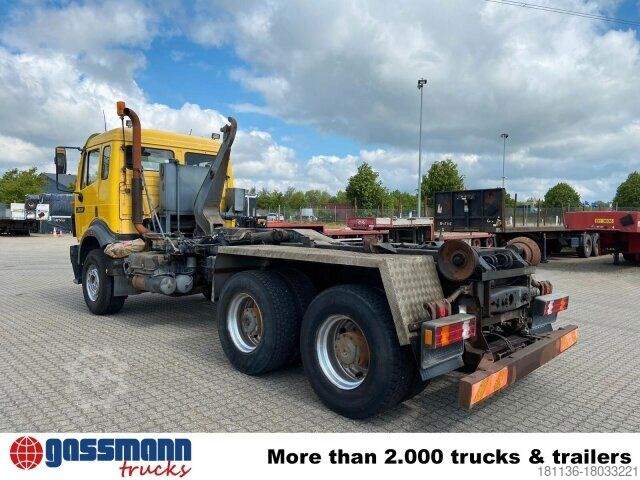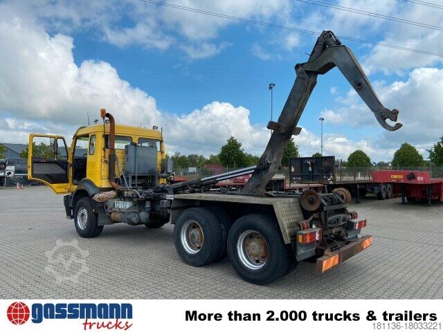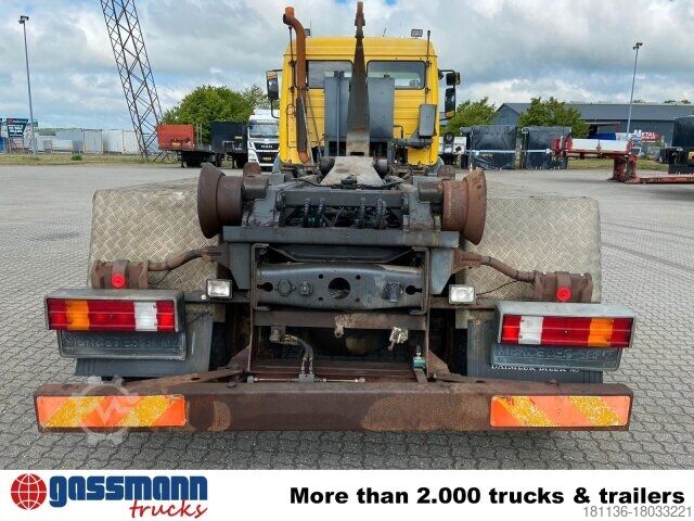 Wheelbase: 4100 mm Body: Hiab Multilift roll-off system with articulated arm for container 5.5 m ABS, brake pad wear indicator, front springs stronger level I, rear axle 13 t crown wheel 300, 9 t front axle, differential lock rear axle, reinforced steering, additional sound insulation, flame system, central lubrication system, Flexible Diagnostic System (FDS), rear engine output for hydraulic pump.