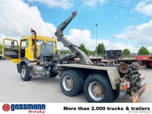 Vehicle location: Bovenden, mtl. house, 1x comfort seat, seat heating, rear window, e-window right, compressed air horn, ABS (anti-lock braking system), power take-off, exhaust raised, automatic, central lubrication system, differential lock, driving lights, work lights, rotating beacon, leaf suspension, air+light connections for trailer hitch, winter service equipment, aluminum side guards