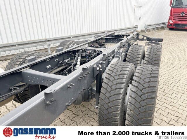 Vehicle location: Bovenden, Kz. Haus, 1x air seat, seat heating, rear window, electric mirror, heated mirror, electric window left, electric window right, air conditioning, cruise control, ABS (anti-lock braking system), traction control (ASR), constant throttle, auxiliary drive, automatic, differential lock, fog lights, work lights, leaf spring suspension, air + light connections for tow bar, aluminum tank, 2 axles with pre-steering, hydraulic cross-lock, roof hatch, green environmental sticker
