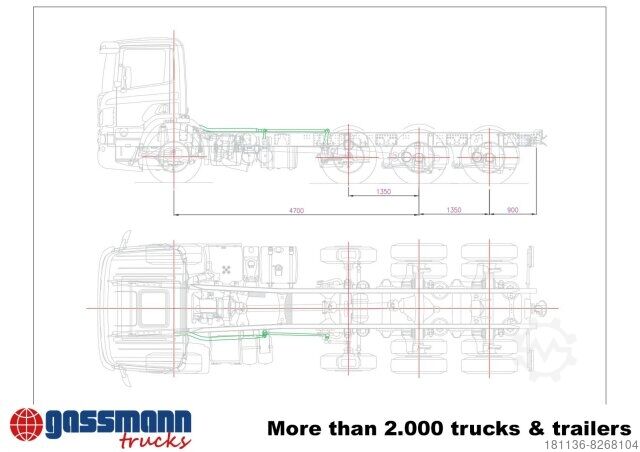 Body: 20t hooklift system for containers from 4.5m to 6.8m, hook height 1,570mm, titanium version, hydraulic combination container locking (inside and outside), mechanical pickup hook safety lock, plastic cover over control block, pneumatic cab operation, full-speed mode, oil tank supplied with 2” hoses & connection fittings, 84L standard pump, anti-slip mounting kit for 14 mm bolts, equipment length: 5,700mm!