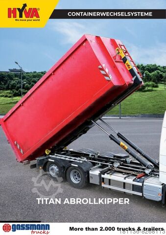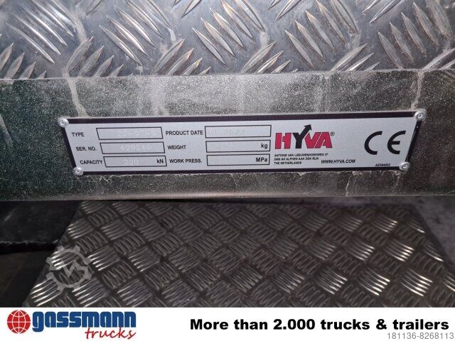 Body: 20t hooklift system for containers from 4.5m to 6.8m, hook height 1,570mm, Titan version, hydraulic combination container locking (internal and external), mechanical pick-up hook locking, plastic cover over control block, driver’s cab controls pneumatic, complete high-speed function, oil tank supplied with 2" hoses & connection materials, 84l standard pump, mounting kit for 14 mm bolts with high shear strength, equipment length: 5,700mm!