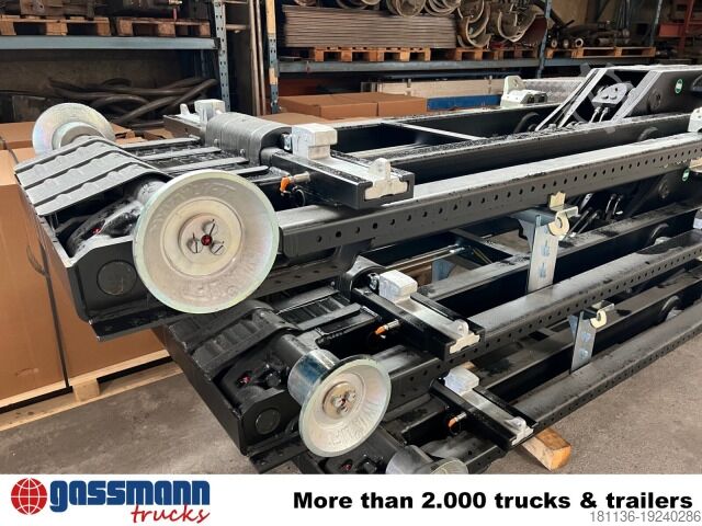 Body: 26t hooklift system for containers from 4.3m to 6.6m, hook height 1,570mm, titanium version, hydraulic combined container locking (internal and external), mechanical lifting hook lock, plastic cover over control block, driver cabin control pneumatic, complete fast motion system, oil tank supplied with 2" hoses & connection materials, 84l standard pump, anti-slip installation kit for 14mm bolts, equipment length: 5,500mm!