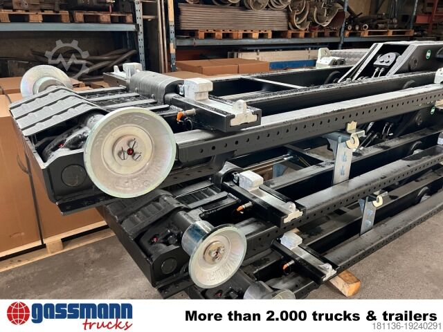 Vehicle location: Bovenden, hydraulic cross locking. Build: 26t hookloader system for containers from 4.3m to 6.6m, hook height 1,570mm, titanium version, hydraulic combined container locking system (internal and external), mechanical pick-up hook locking, plastic cover over the control block, pneumatic cab operation, complete high-speed mode, oil tank supplied with 2" hoses & connection materials, standard pump 84l, mounting kit torsion-resistant for 14 mm bolts, device length: 5,500mm!