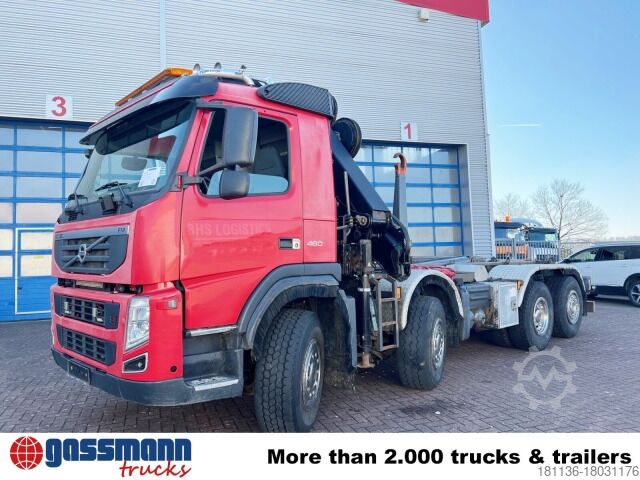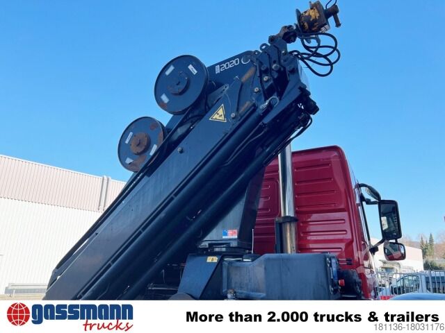 Vehicle location: Bovenden, I-Shift, Mtlg. house, 1x comfort seat, heated seats, electric mirrors, heated mirrors, electric window left, electric window right, air conditioning, sun visor, cruise control, air horn, ABS (anti-lock braking system), traction control (ASR), constant throttle, power take-off, lifting+lowering, differential lock, work lights, rotating beacon, storage box, air suspension, air+light trailer hitch, aluminum tank, low-noise G1, last axle liftable, 2 axle self-steering, last axle hydr. steered, U-protection, hydraulic cross-locking, crane behind house, emergency stop, grapple control, foldable, 2-point hydraulic outriggers, radio remote control, four hydraulic extensions, green environmental sticker