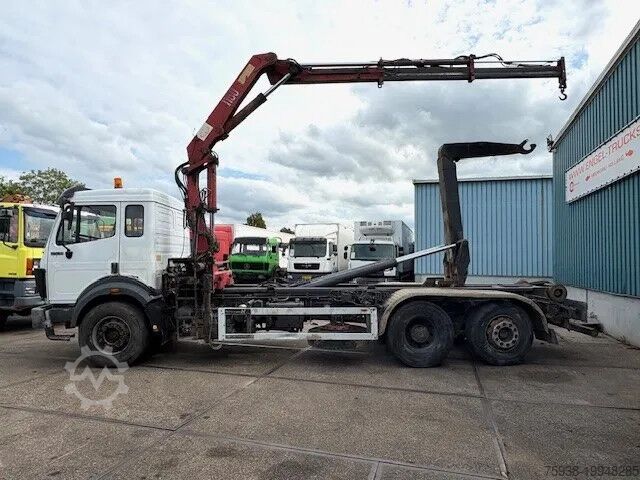 GOOD CONDITION MERCEDES-BENZ SK2527 V6 6x2 FULL STEEL CHASSIS WITH 20,000 KG HOOK-ARM SYSTEM & HMF F1150 CRANE BEHIND THE CAB!!