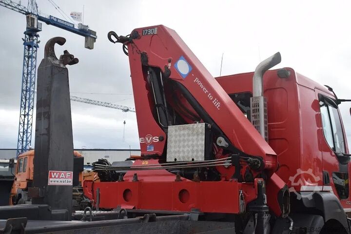 Waf hooklift 17 tonnes – HMF 1730 crane – 2 hydraulic – Rotor – Radio controlled – Airco -Automatic gearbox – Total 26,000 kg – Tare 17,530 kg – Wheelbase 4505 –
