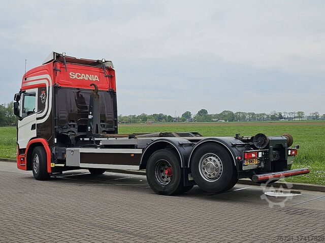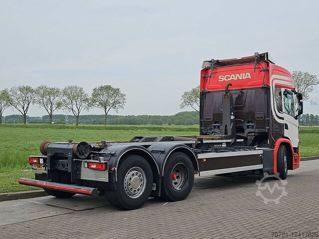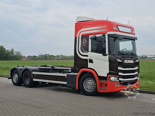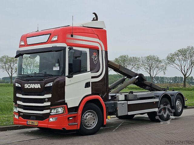 Number of axles: 3, Configuration: 6x2, Payload: 16,135 kg, Unladen weight: 11,865 kg, Gross weight: 28,000 kg, Total fuel tank capacity: 400 liters, Unbraked towing capacity: 750 kg, Braked center axle towing capacity: 24,000 kg, Number of locks: 1, Central lubrication, Suspension type: Air suspension, Cabin type: Sleeper cab, Cruise control, Tachograph (Control Unit), Digital Tachograph, Air conditioning, Auxiliary heating, Color: Multicolored, Engine manufacturer: Scania, Engine power: 331 kW (444 Hp), Fuel: Diesel, Euro: 6, Transmission type: Opti-cruise, Gears: 12, Power steering, ABS, ASR, Hydraulic system, PTO, PTO type: 1, Body construction year: 2019, Body material: Steel, System length: 584 cm, Hooklift and cable system manufacturer: VDL, System type: SK-21-6200, Pump, Hooklift height: 127, Seats: 2, FROM FIRST OWNER / ONLY LONG HAUL
