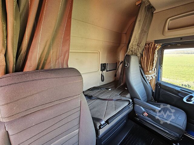 Number of axles: 3, Configuration: 6x2, Tare weight: 12,515 kg, Gross weight: 26,000 kg, Total fuel capacity: 600 liters, Trailer coupling, Kingpin diameter: 40 DIN, Number of locks: 1, Suspension type: Air suspension, Cruise control, Tachograph (Control Unit), Digital tachograph, Air conditioning, Auxiliary heating, Color: Blue, Engine power: 368 kW (493 HP), Euro: 5, Transmission type: Opti-cruise, Gears: 12, Clutch pedal, Auxiliary braking system, Retarder Brand: Scania, Power steering, ABS, ASR, Power take-off, PTO type: 1, System length: 550 cm, Pump, Hook attachment height: 143