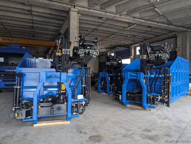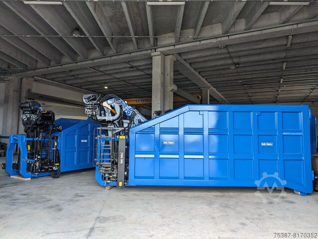 BOB Italerv roll-off crate, with loader, with folding rear-cab polyp, with hydraulically swiveling and removable outrigger feet, Ardox crate with rear door