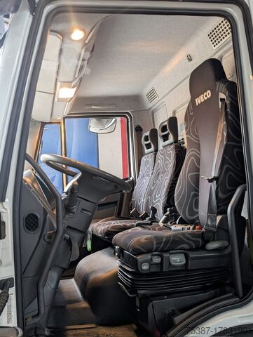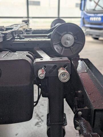 IVECO 120E25K, Year 2015, White, Euro 6, Km. 195.145, Wheelbase 3105, 9-speed manual transmission. Differential lock, air conditioning, new front tyres, 90% rear tyres, like new, complete with new BOB Italev 12 Ton hook lift system, vertical roller, hydraulic box lock, hydraulic system for crane box