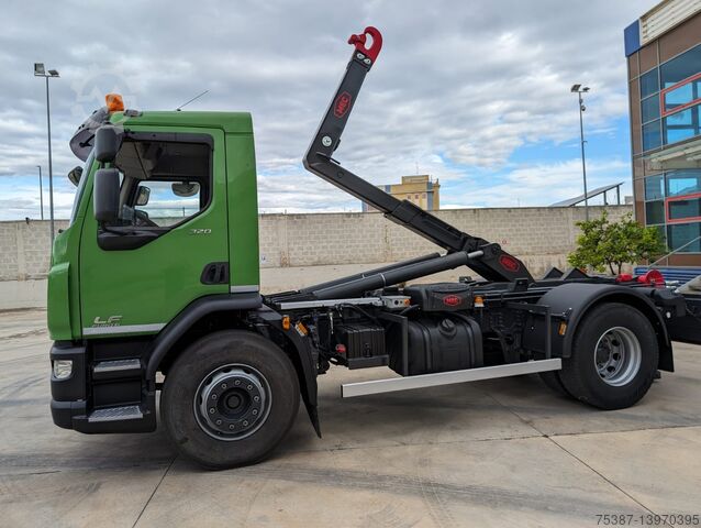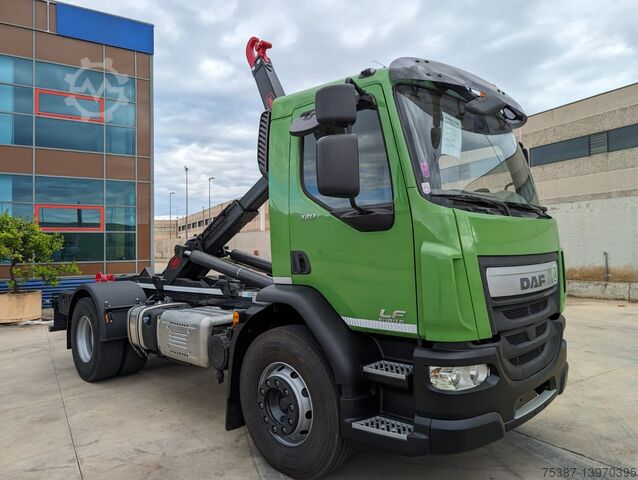 DAF LF55.320, Euro 6, Year 2017, Km 374,570, Wheelbase 3750, 320 horsepower, ZF 9-speed manual transmission, differential lock, 7.5 Ton 1st axle, tire 80%, full optional, complete with MEC factory new 16 Ton unloader system, with roller in vertical, hydraulic locking, hydraulic system for crane boxes