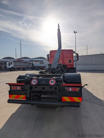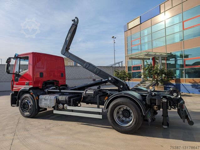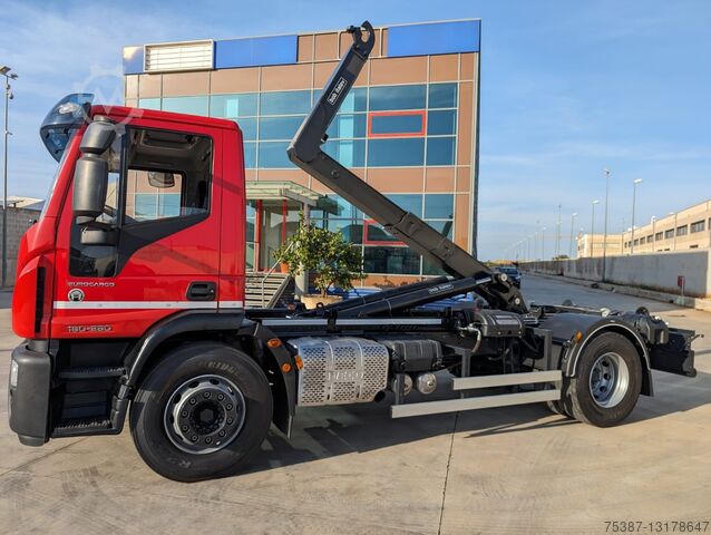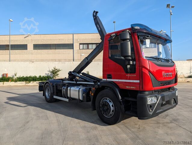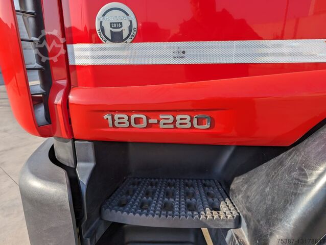 IVECO 180E28, Year 2016, Euro 6, Km 215,980, Red color, ZF 9-speed manual transmission, differential lock, air conditioning, pneumatic rear suspension, tire 80%, complete with brand new factory BOB Italev 16 Ton unloader system, with roller in vertical, hydraulic system for crane box and for unloader box max length 5.55, like new
