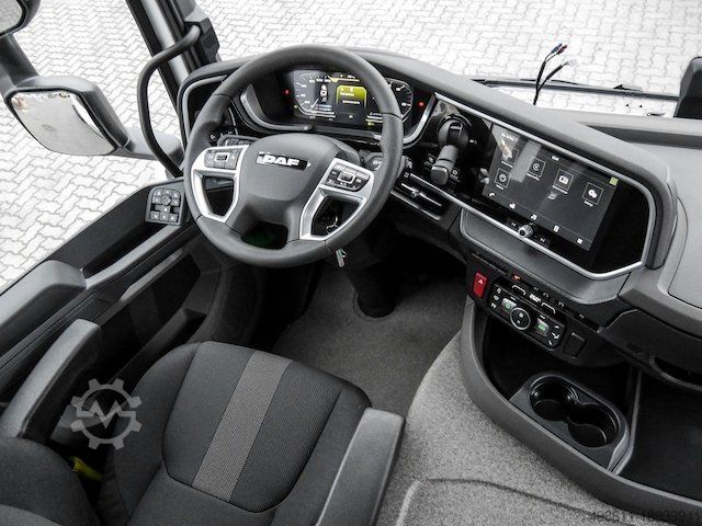 Gross vehicle weight: 18000 kg, fabric seats, anthracite interior, leaf air suspension, intarder, digital tachograph, brake assist, ESP electronic stability program, comfort seats, air-suspended driver's seat, heated driver's seat, radio with MP3, rear view camera, leather steering wheel, power steering, roof hatch, central locking, cool box and refrigerator, rotating beacon, work lights: preparation for rear work lights, Day Cab mechanical cab suspension, passenger seat: cinema with fabric cover, Adaptive Cruise Control with FCW and AEBS-3, lane change warning system, front: 8.00 t, parabolic, 167N Goodyear RR, not applicable, emission class Euro 6, automated transmission, TraXon, 12 gears, standard component layout, fuel tank on the left, PACCAR Connect Warranty Plus driveline - 3 years - 200,000 km, tipper V1 transmission - PTO, PlugPlay, BB-CAN-Ctrl Flexible Driver's cab step Signal horns, prepared Two LED headlights for the rear wall of the cab Rotating beacons on the front of the cab, prepared Windscreen with sun protection film Rear window: double glazed Central locking, 2 keys, 2 remote controls 2 steering wheel, leather Door trim: loosely woven fabric Driver's seat: Luxury Air Armrests on both sides of the driver's seat Dashboard table Cooler box or refrigerator LED interior lighting Automatic cab climate control Auxiliary and engine heating, waste heat pump and timer Roller blind on the driver's side Roof hatch with electrical operation FMS connector, extended and prepared Digital tachograph, VDO 1C, version G2V2 Speed limit setting 90 km/h DAF Infotainment Luxury Plus, Luxury Speakers Antennas: Radio, 2x Mobile, GNSS Extra: CB Wireless Charger Reversing Alarm Rear axle 1, 12600 kg, Load Index 148 Front axle(s): 385/65R22.5 F1,385/65R22.5GO OMTSHL 164/000 K Steering CBB 3P R1,315/80R22.5GO OMTD 156/150 K Traction DBB MX-11 engine, 330 kW/449 hp Cab badge: 450 ECO power 12-speed TraXon gearbox 12TX2610