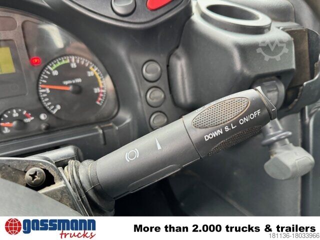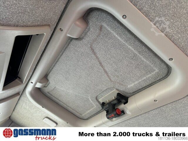 Vehicle location: Bovenden, mtl. house, 1x air seat, rear window, electric mirror, heated mirror, electric window left, electric window right, air conditioning, sun visor, air horn, switch 16, ABS (anti-lock braking system), constant throttle, auxiliary drive, exhaust raised, differential lock, rotating beacon, storage box, leaf suspension, tow bar air-light-hydr., low-noise G1, folding U-protection, roof hatch, environmental badge green