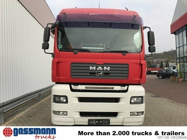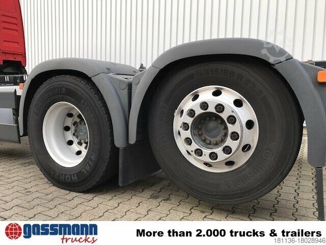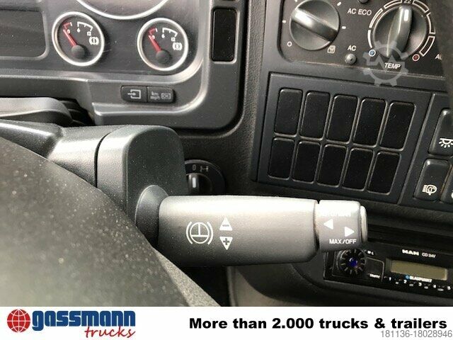 Vehicle location: Bovenden, Mtlg. house, 2x air seat, 1x couch, electric mirror, electric window left, electric window right, air conditioning, sun visor, radio-CD, cruise control, auxiliary heating, ABS (anti-lock braking system), traction control system (ASR), Intarder, auxiliary drive, front exhaust, automatic, differential lock, fog lights, leaf-,air, last axle liftable, tow bar air+light, aluminum tank, aluminum rims, noise protection G1, U-protection, lateral aluminum protection, roof hatch, environmental sticker green Aluminum side protection, roof hatch, green environmental sticker