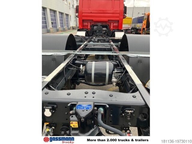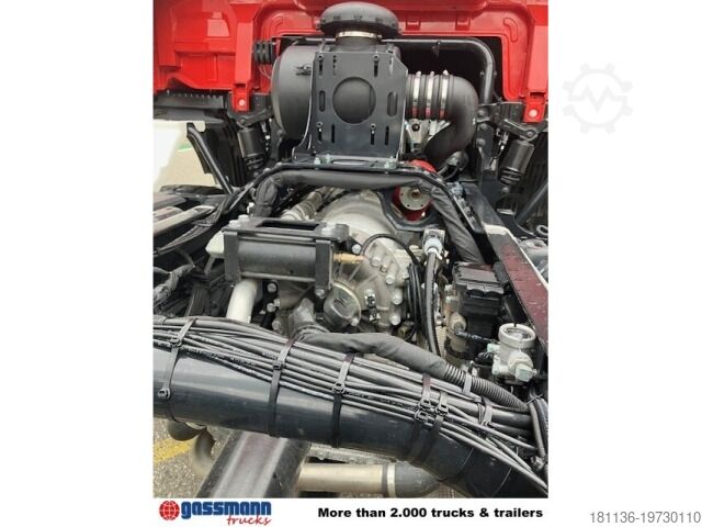Wheelbase: 4200 mm Allison 3000 automatic gearbox, 6-speed, fire service driving program, Allison retarder, additional Duo-Matic quick-release coupling at the end of the frame. 3-point static seat belt for center seat, side camera system (SCS), separate display on A-pillar, engine-dependent PTO type CH870-G with flange, f=1.77 Top Mount, engine-dependent PTO type CH870-D without flange, f=1.21 Side Mount, 33,000kg permissible GVW, parabolic leaf suspension on rear axle, 4-leaf, steel, spring-applied parking brake on rear axles (incl. VLA/NLA), interior styling according to color scheme, MAN EasyControl engine control panel, 2 functions, operable from outside with door open, stationary regeneration for catalyst, can be performed at any time for low-load operations, coolant connection for external consumers, heated fuel filter for fuels up to cleanliness class 21, front detection, can be deactivated, traffic sign recognition, standard entry handles, engine with onboard diagnostics, OBD-E, MAN D0836 LFLBL diesel engine, 235 kW (320 hp) power, 1,250 Nm torque, Euro 6e, stone guard for front headlights, coarse and fine mesh grilles, rear axle HP-1333, 13,000 kg, AP axle without through drive, straight, non-steered, non-lifting, interface for extended signal output (EIO), tire pressure monitoring system (TPM) with tire temperature display, trailer hitch on rear crossmember, RINGFEDER type RF40/G150B, MAN EasyStart roll-away protection with climb brake, MAN AttentionGuard driver fatigue warning system, non-disconnectable, three-phase alternator, 28 V, 190 A, 5,320 W, LIN, interior light, reading light (both sides), anti-lock braking system (ABS), off-road, with additional terrain logic, electronic braking system (EBS), high-performance engine brake MAN EVBec, adjustable, heated air dryer, oil dipstick and digital oil level indicator, dry air filter with safety insert, emergency brake signal, automatic hazard warning activation, full braking assistant, parking brake on front axle(s) pneumatically operated, additionally, exhaustible, axle ratio i=6.00, differential locks on driven rear axles, differential locks on driven front axles, warning buzzer for engaged front axle locks, MAN TipMatic Offroad drive program, up to 70,000 kg, flame start system, viscous fan engine cooler, Euro 6 emissions standard, SCR exhaust aftertreatment, MAN D0836 diesel engine, 6.9 l, CommonRail, inline six-cylinder, 235 kW (320 hp) engine output, single-stage turbocharging with intercooler, front towing fill connection, electric battery master switch, battery cable extension, 6 m, air tank, steel, rear of vehicle, straight frame end, rear axle as hub reduction axle, driven, permanent, front axle as ... ACCESSORY INFORMATION WITHOUT WARRANTY, subject to changes, prior sale, and errors!