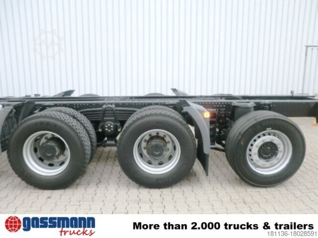Wheelbase: 5300 mm Body: 50.000kg Perm. GGw. 9,5t front axles, last axle 9t RAS-steered air-suspended retrofitted by Maurer, new price of the axle with conversion 42.250,- EUR! Wheelbase 1.792 + 3.504 + 1.400mm, multifunction steering wheel, wiring for tanker according to ADR, power take-off 122JH, new vehicle with day registration 05.04.2011!