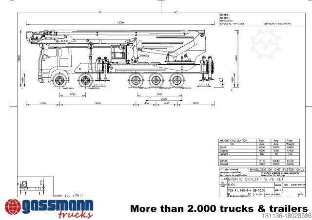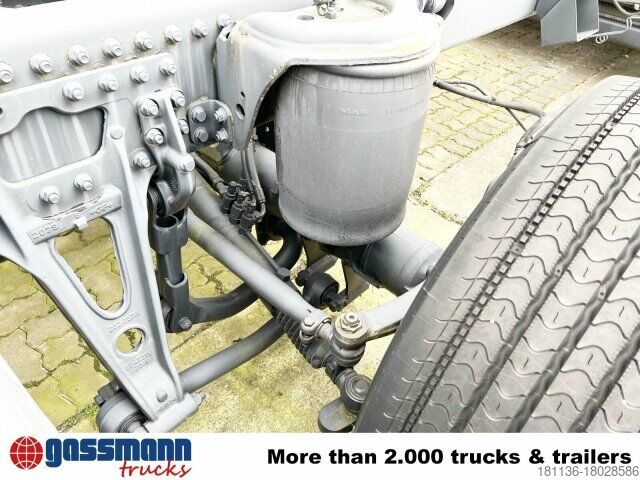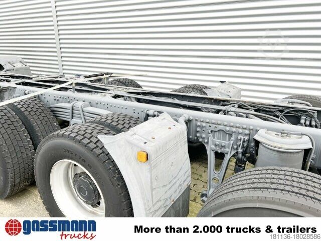 Wheelbase: 5300 mm Body: 50.000kg w. 9,5t front axles, last axle 9t RAS-steered air-suspended retrofitted by Maurer, new price of the axle with conversion 42.250,- EUR! Wheelbase 1.792 + 3.504 + 1.400mm, ZF-Intarder, gearbox Eurotronic ZF, power take-off 3-fold, multifunction steering wheel, wiring for tanker according to ADR, power take-off 122JN, new vehicle with daily registration 05.04.2011! On request and at extra charge also with crane!