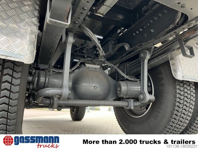 Wheelbase: 3600 mm 7.5t front axle, rear axle H7 13t disc wheel 300, Telligent brake system with ABS and ASR, ABS can be switched off, disc brakes with full protection on front and rear axle, rear axle stabilizer, steel bumper, distributor cockpit, reinforced clutch, Telligent gearshift II, construction site filter, protective plate under radiator and engine, increased engine cooling capacity, auxiliary drive countershaft MB 131-2c, tank capacity: 400l.