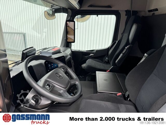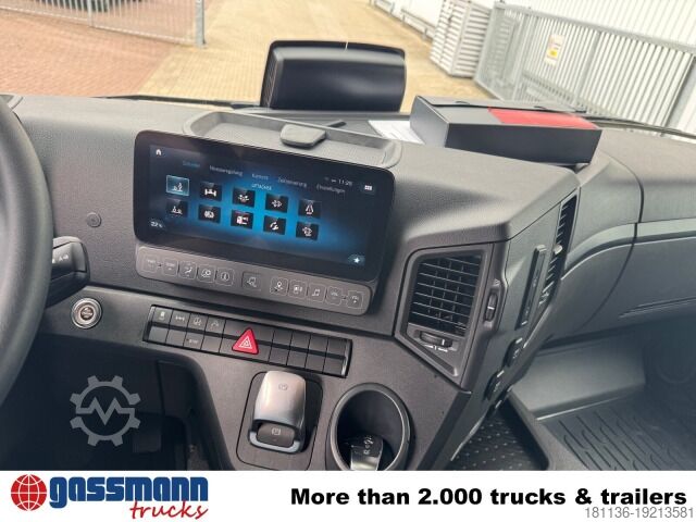 Wheelbase: 4600 mm, 7.5t front axle, rear axle 13t hypoid crown gear 440, 7.5t trailing axle steered/relievable/liftable, electronic braking system with ABS and ASR, disc brakes with partial protection on front and rear axles, electronic parking brake, secondary oil retarder, condensate monitoring for the compressed air system, front axle stabilizer, additional rear/trailing axle stabilizer, aluminum front underrun protection. Seat belt reminder, lower bed, residual heat utilization, auxiliary hot water heating, 2nd generation PSM, traction control, ADR type class EX/II including AT, reversing alarm, illuminated Mercedes star, ClassicSpace, MirrorCam, comfort locking system, light sensor, rain sensor, Mercedes PowerShift 3, economy/power transmission mode, navigation system, axle load measuring device, Multimedia Cockpit Interactive, Remote Online, LED daytime running lights, LED headlights, High Performance Engine Brake, ESP, lane keeping assist, proximity assist, attention assist, traffic sign assist, Active Brake Assist 5, Active Sideguard Assist, tire pressure monitoring, driver airbag, radar assistance system High, refrigerator.