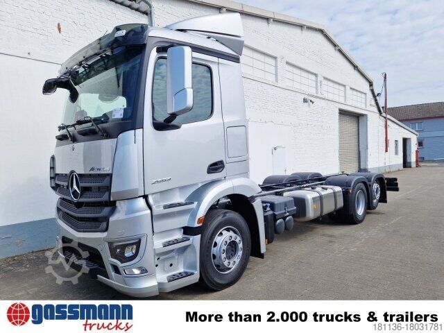 Wheelbase: 4600 mm Body: Body length approx. 7,150 mm, frame height approx. 970 mm, 68 to . Front axle air-sprung, 8 t front axle, rear axle 13 t hypoid disk wheel 485, 7.5 t trailing axle unloadable/liftable, electronic brake system with ABS and ASR, disc brakes on front and rear axle, electronic parking brake, condensation water monitoring for compressed air system, trailer stability control assistant (TSA), secondary oil retarder, Additional rear/trailing axle stabilizer, Axle load measuring device, Aluminium front underride guard, Residual heat recovery, ClassicSpace, Comfort locking system, Light sensor, Rain sensor, Mercedes PowerShift 3, Economy/Power drive program, Navigation system, Multimedia Cockpit Interactive, Remote Online, Digital radio, Pre-fitting for toll collection, Tank capacity: 500l, LED headlights, LED daytime running lights, High Performance Engine Brake, Headlight cleaning system, Automatic high/low beam, Start-off aid, Safety pack, Sight package, Economy package, Smoking package, ESP, Roll control assist, Lane departure warning, Traffic sign assist, Active Brake Assist 5, Distance assist, Attention assist, Active Sideguard Assist, Seat belt monitoring, Driver airbag, Fridge. New vehicle from stock, 68 to . ACCESSORIES WITHOUT WARRANTY, subject to alterations, prior sale and errors excepted!