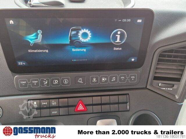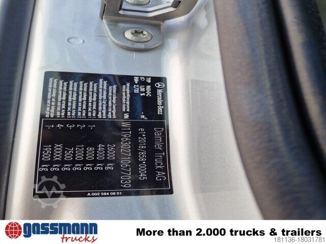 Vehicle location: Bovenden, ClassicSpace, Active Brake Assist, Mercedes PowerShift 3, Mtlg. House, 1x comfort seat, heated seats, electric mirror, electric window left, electric window right, air conditioning, sun visor, cruise control, navigation system, air horn, ABS (anti-lock braking system), traction control (ASR), retarder, constant throttle, lift+lower, differential lock, fog lights, air suspension, towbar air+light, aluminum tank, last axle liftable, U-protection, roof hatch, environmental badge green