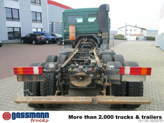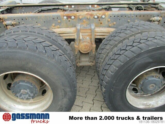 Wheelbase: 3300 mm 7.5 t front axle, rear axle H7 13 t disk wheel 233, Telligent brake system with ABS and ASR, ABS can be switched off, disc brake with full protection on front axle, drum brake on rear axle, steel bumper, pre-installation for toll collection, distributor cockpit, reinforced clutch, Telligent circuit II, construction site filter, on-board diagnostics 1.0, tank capacity: 300 l, auxiliary drive countershaft MB 131-2c.