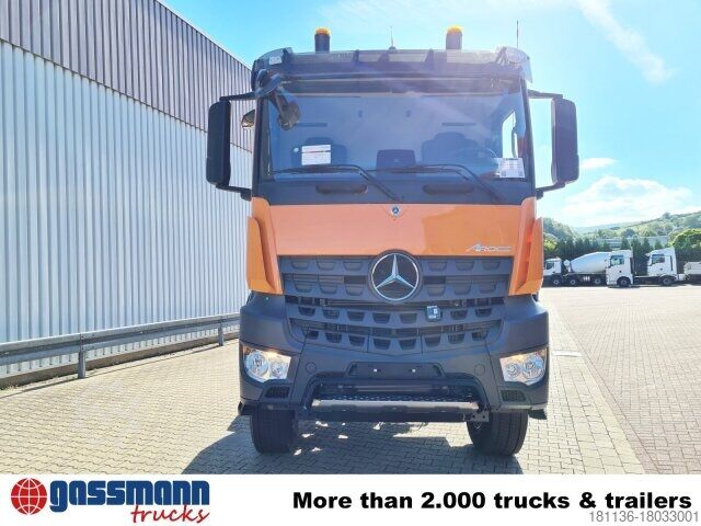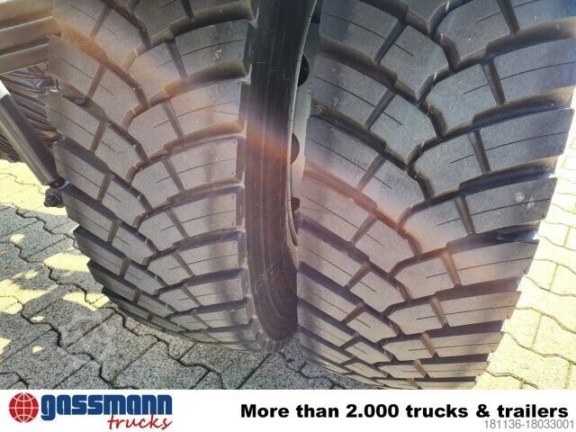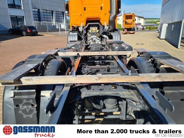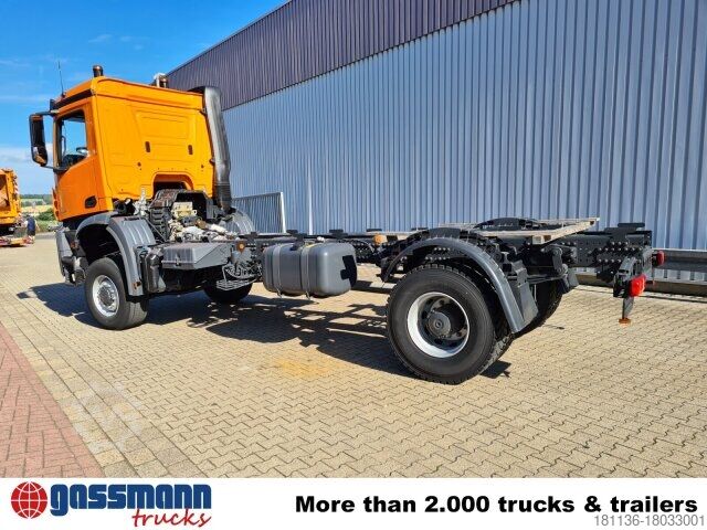 Wheelbase: 5100 mm 9t front axle, rear axle disc wheel 300 planets 13.4t, differential lock front axle, electronic brake system with ABS and ASR, ABS can be switched off, drum brake on front and rear axle, electronic parking brake, condensation water monitoring for compressed air system, stabilizer bar front and rear axle, seatbelt monitoring, residual heat utilization, hot-water auxiliary heating, construction site filter, PSM 2. generation, reversing alarm, ClassicSpace, light and rain sensor, offroad driving program, Mercedes PowerShift 3, Classic Cockpit, daytime running lights, protective plate under bumper, transmission oil cooling, rear engine output c SAE-A hydraulic pump.