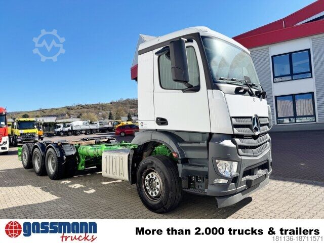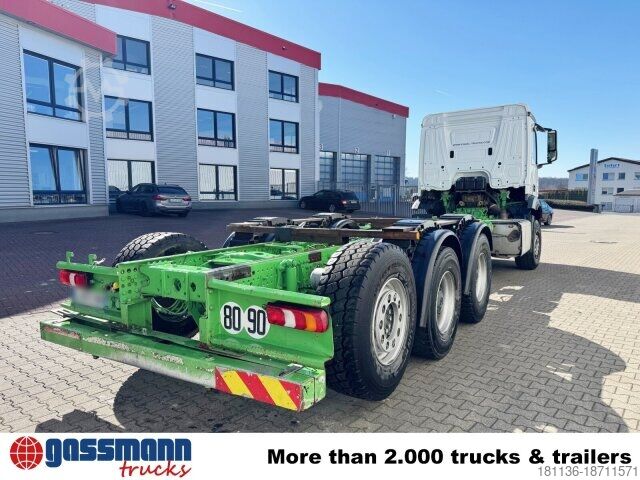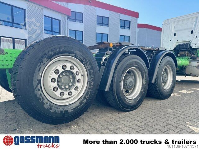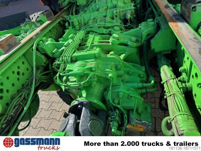 Wheelbase: 4800 mm, 9t front axle, rear axle crown gear 233 planetary 13.4t, 9t trailing axle steered/relieved/liftable, electronic braking system with ABS and ASR, disc brakes with full protection on the front and rear axles, front axle stabilizer, aluminum front underride protection, smoker's package, construction site filter, PSM, communication interface (KOM), reversing alarm, ClassicSpace, comfort locking system, transmission oil cooling, engine brake, power take-off MB 131-2c pump. Frame length approx. 7900mm! ACCESSORY INFORMATION WITHOUT GUARANTEE, subject to change, prior sale, and errors!