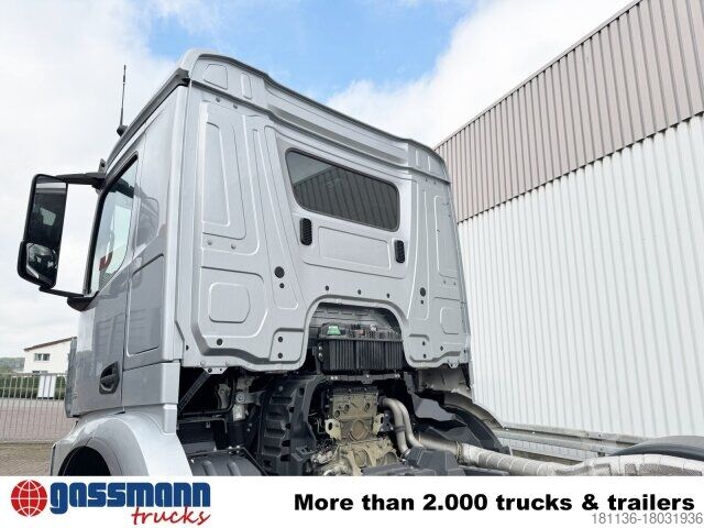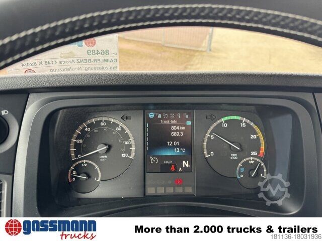 Wheelbase: 4550 mm 7.5t front axle, rear axle disc wheel 300 planets 13.4t, electronic brake system with ABS and ASR, condensation water monitoring for compressed air system, disc brakes with full protection on front and rear axle, ABS can be switched off, electronic parking brake, turbo retarder clutch, front axle stabilizer, rear axle stabilizer, leather steering wheel, seat belt control, residual heat utilization, construction site filter, reversing alarm, Mercedes star illuminated, ClassicSpace, comfort locking system, Offroad drive program, Mercedes PowerShift 3, Multimedia Radio Touch, digital radio, protective plate under bumper, LED daytime running lights, High Performance Engine Brake, Driving Package, driver airbag, transmission oil cooling, refrigerator, tank capacity: 320l, power take-off MB 131-2c pump.